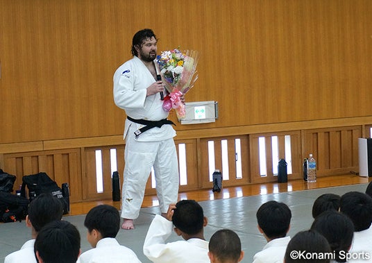 また、当日は引退セレモニーも催され、ウルフ アロン氏から子どもたちに「みなさんも楽しみながら自分なりの柔道を続けてください。また、柔道だけでなく、これから経験するすべてのことを大切にし、自分の好きなことを見つけていく人生であってほしい」とメッセージが送られました。