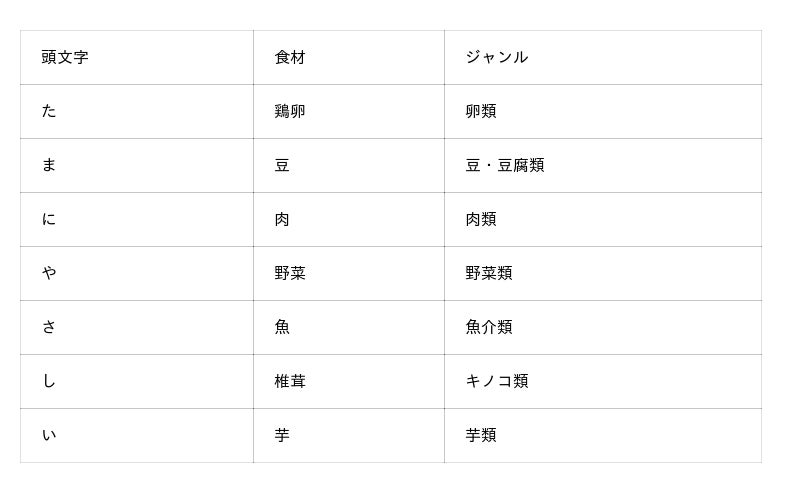 食材の頭文字をとり、語呂合わせにした千代田荘オリジナルの造語です。