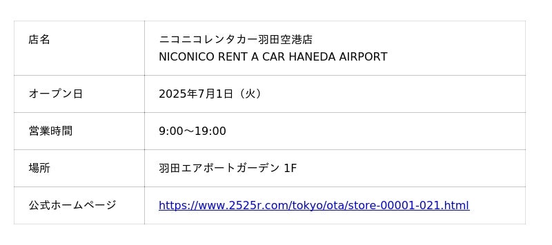 2025年7月1日、羽田エアポートガーデンに「ニコニコレンタカー羽田空港店」がオープンいたします。多言語対応スタッフの常駐や、返却ルートマップの多言語展開など、多様なお客様に向けたサービスをご提供します。