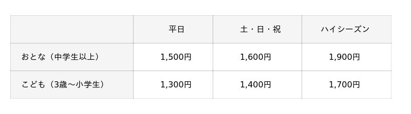 平日・土日祝:5,500円、ハイシーズン6,600円