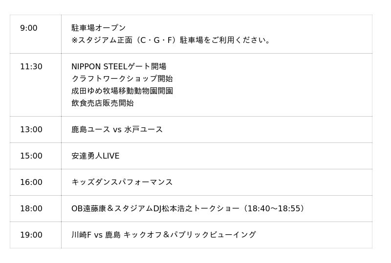 当日は、川崎フロンターレ戦(U等々力/19:00キックオフ)のパブリックビューイング開催をはじめ、鹿島アントラーズユースが出場する2025Jユースカップvs水戸ホーリーホック戦(13:00)の茨城台湾総会協力のもと、台湾飲食グルメをはじめ、縁日やクラフトワークショップなどが出店するほか、いばらき大使・笠間特別観光大使の安達勇人LIVEやキッズダンスなどのステージパフォーマンスも同時開催されます。