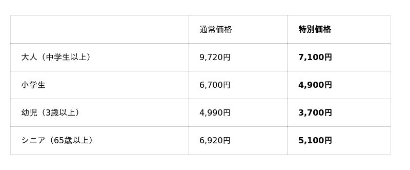 販売価格  ※通常価格は東京サマーランドとスパリゾートハワイアンズの入場料金の合計