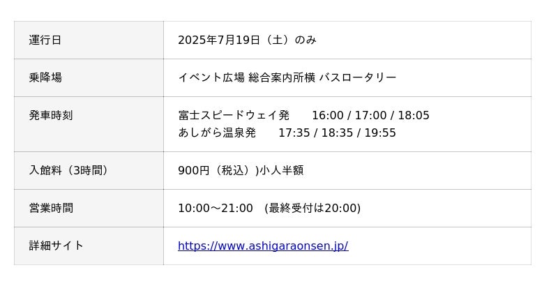 ・場内にご宿泊の方向け!往復シャトルバスが便利な 『あしがら温泉&御胎内温泉』