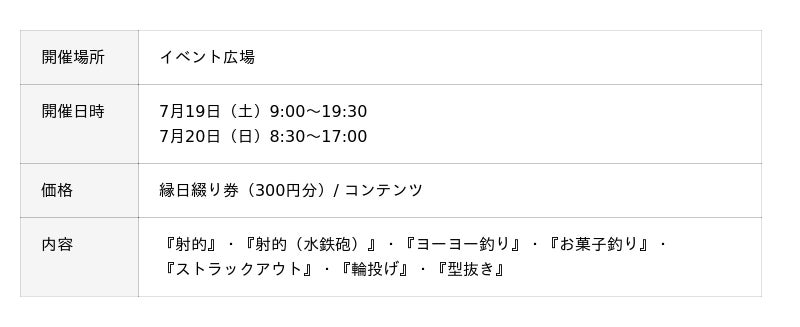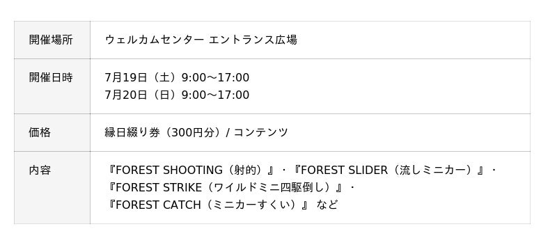 ・ ”夏祭り” といえば?をお楽しみいただける体験コンテンツ 『フォレスト縁日と縁日屋台』