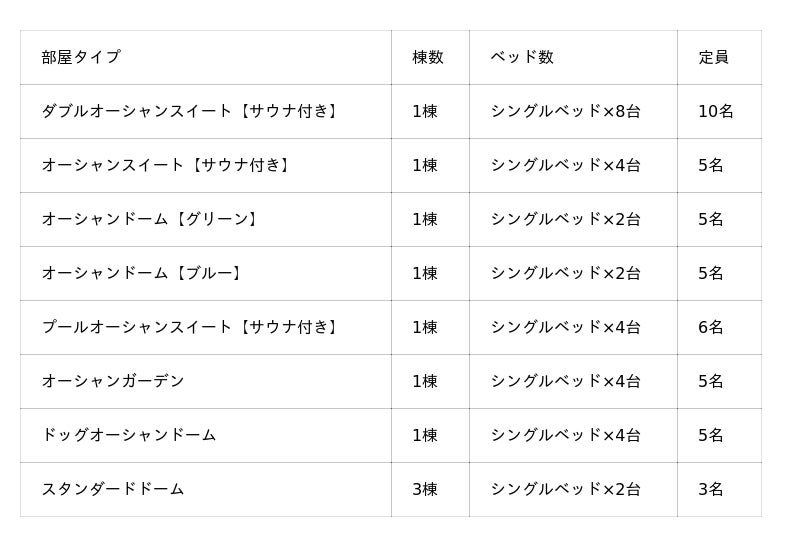 大切な人と特別なひとときを過ごすための「カップル限定プラン」です。対象の部屋は、壮大な海の眺めが広がる「オーシャンドーム」、快適な空間を提供する「スタンダードドーム」。