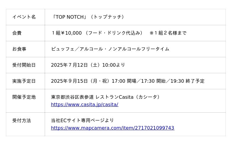 イベントページ https://www.mapcamera.com/html/topnotch/index.html