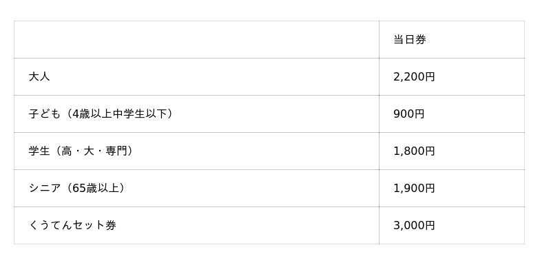 ※くうてんセット券は、一般入場券+くうてん1,000円分お食事券のセット券です。