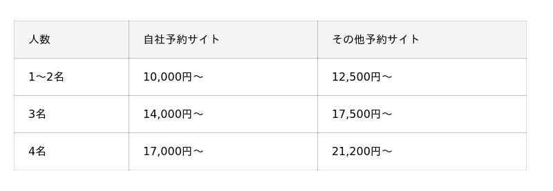 【ご利用料金】(1室料金・税込) ※料金は時期により変動する場合がございます。