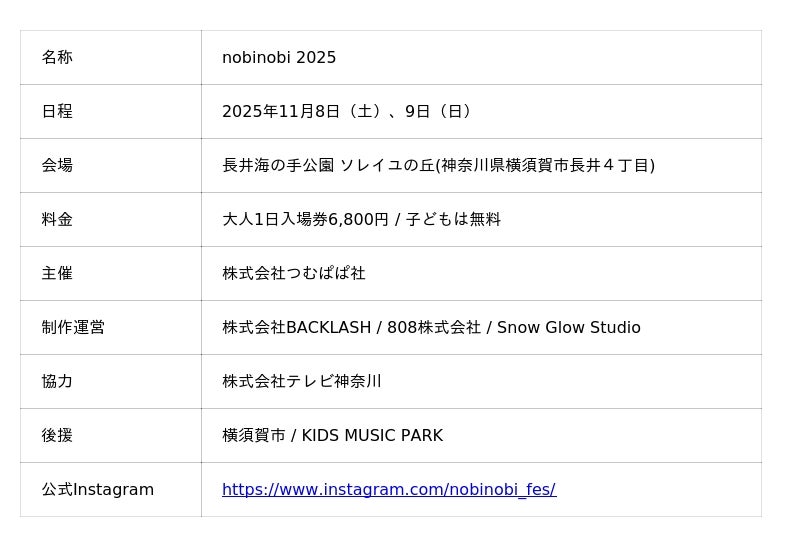 nobinobi公式サイト注意事項ページ:https://nobinobi-fes.com/caution