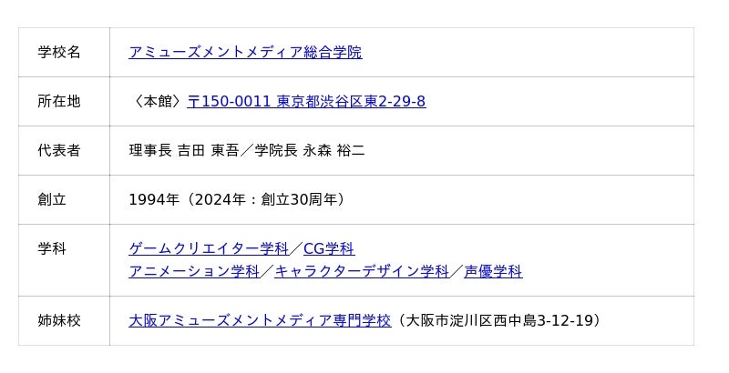 2年間でエンタテインメント業界の第一線で活躍できる‟即戦力”の育成を目的に、業界のプロの手で1994年に設立された本学院は、2024年で開校30周年を迎えました。AMGの最大の特徴は、「制作現場こそ、最高の教育現場である。」という創立以来の教育理念を基に、「産学共同・現場実践教育」の実現のために一般に流通する商業コンテンツを制作するAMGグループの事業部で業界経験が積めること。