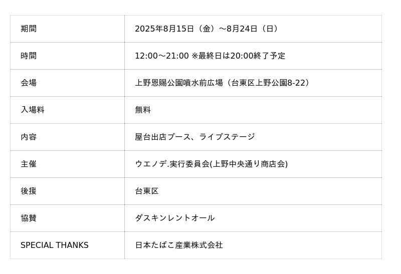 詳細情報は今後も随時発表予定。笑顔あふれる真夏の上野に、ぜひご期待ください!