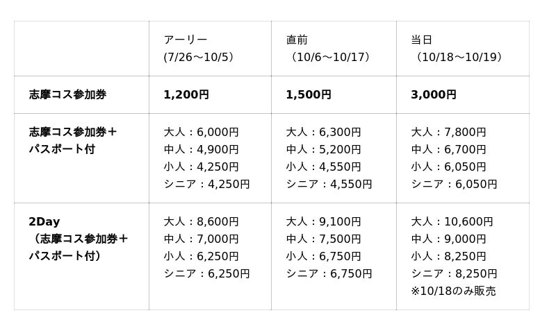 ※10月18日(土)の開催時間は志摩コス参加券をお持ちの方のみ適用。一般来場者は17:30までとなります。