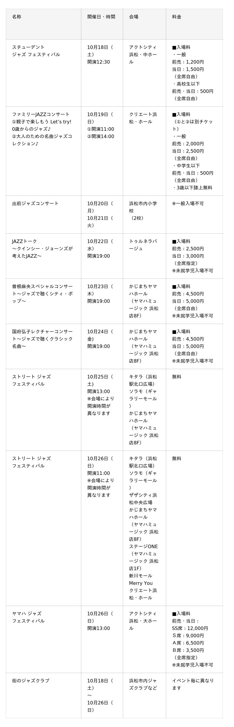 公式Facebook:https://www.facebook.com/hamamatsujazzweek/