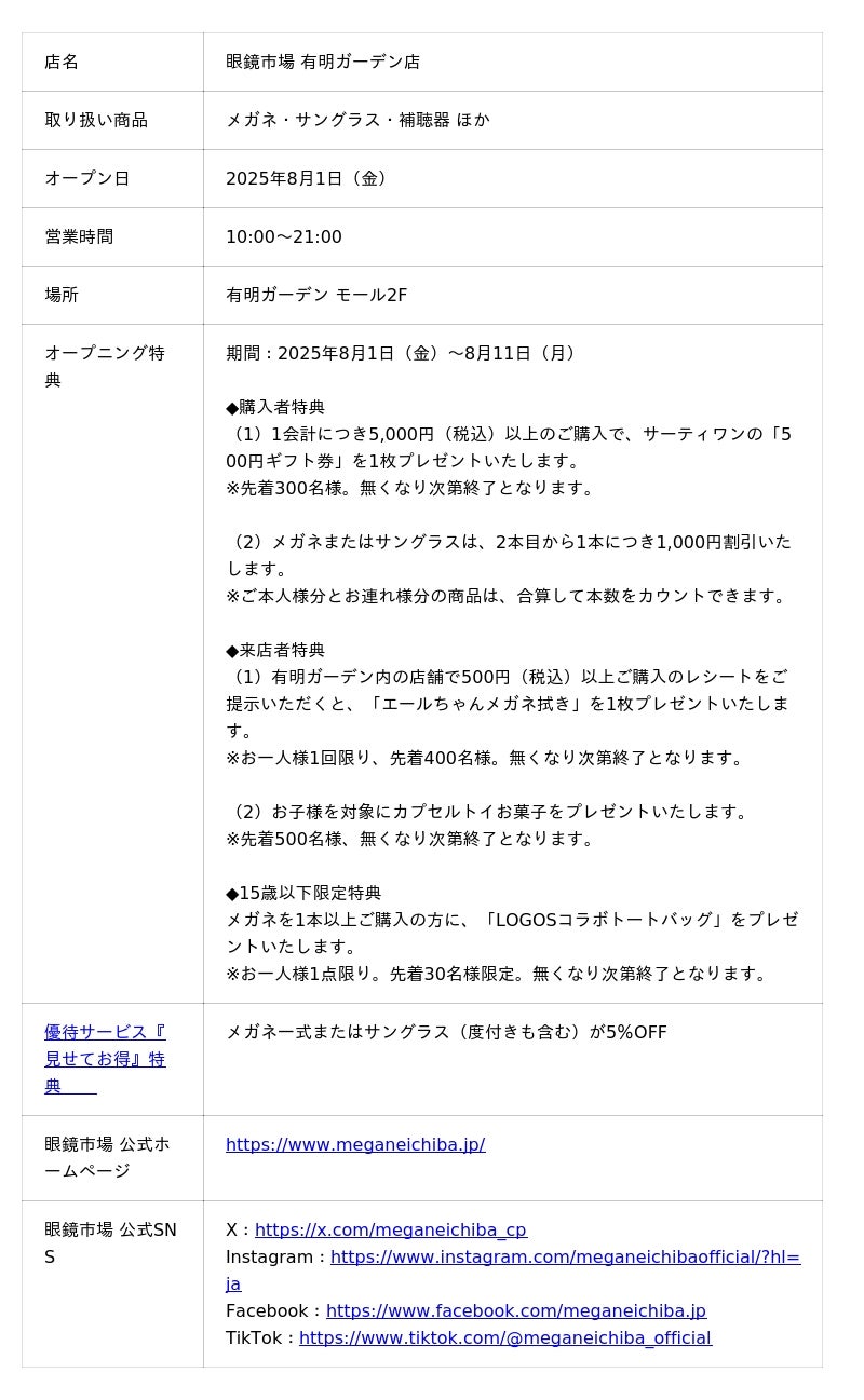 ■新規店舗「眼鏡市場 有明ガーデン店」について