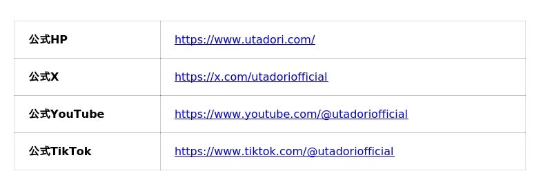 ♪『ウタヒメドリーム』公式HP/公式SNS