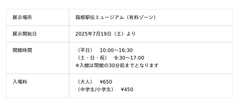 国際興業グループの富士屋ホテル株式会社(本社:神奈川県足柄下郡箱根町宮ノ下359、代表取締役社長:安藤 昭)では、運営を行う箱根駅伝ミュージアム(所在地:神奈川県足柄下郡箱根町箱根167、館長:久保田 紀和)にて、2025年7月19日(土)より 第100回大会までの「東京箱根間往復大学駅伝競走総合優勝杯」の常設展示を開始いたします。