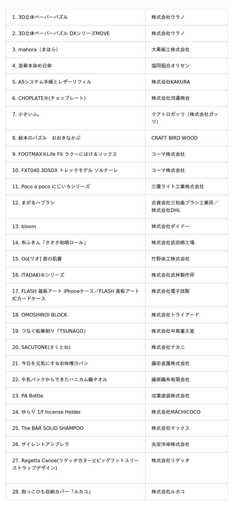 ・大阪製ブランド認定製品 ベストプロダクト(26社28製品:事業者名50音順)