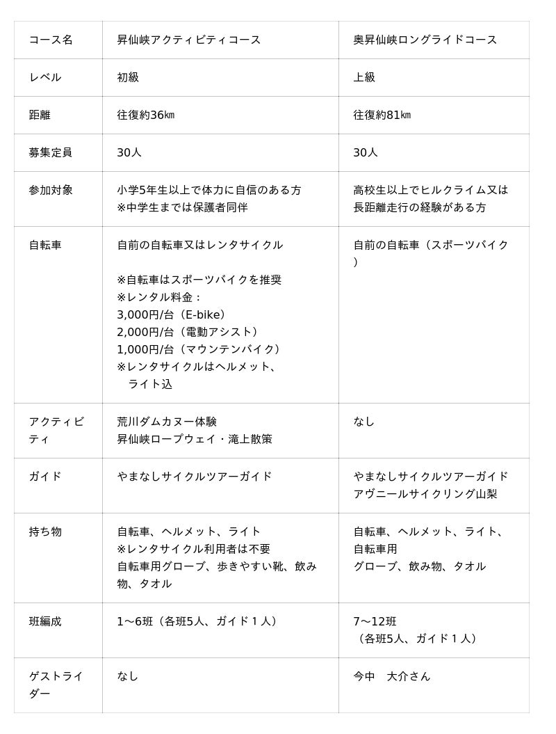 【昇仙峡アクティビティコース】(初級・往復約36km/定員30名)