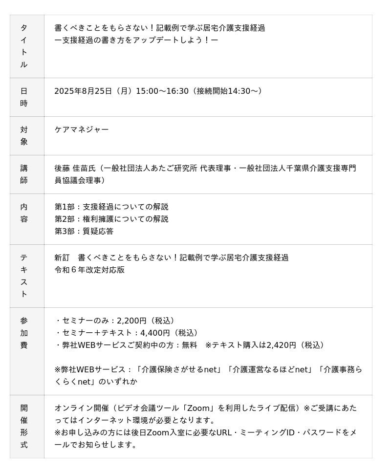 このたびの発刊を記念し、記載例をもとに“書くべきこと”をもらさず書けるようになるセミナーを開催します。
