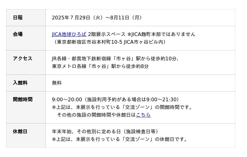 今回、第25回コンテストの優秀作品38点を、2025年7月29日(火)~8月11日(月)まで、「JICA地球ひろば」にて展示します。