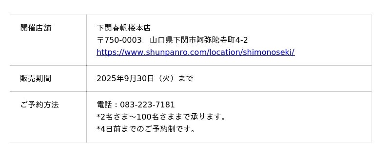 下関春帆楼本店(所在地:山口県下関区 総支配人:手柴 鋼太郎、以下「春帆楼」)は、このたび、日清講和条約130周年を記念した会席料理「日清講和条約130周年記念会席」を9月30日(火)まで期間限定で販売します。