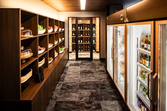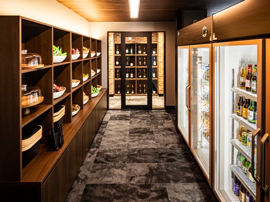 またラウンジに隣接したスペースには、大型冷蔵庫・冷凍庫があり、冷蔵庫にはソフトドリンクから各種アルコール、デザートやおつまみなど、冷凍庫にはコンビニエンスストアを彷彿とさせる冷凍食品のラインナップ。さらに奥にはワインセラーがありオールインクルーシブに含まれます(ワインセラーの設置された客室対象)。