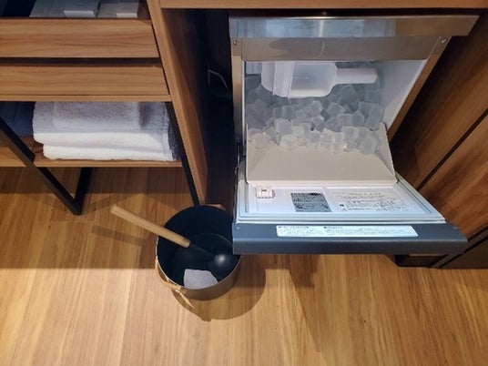 全室にサウナを擁し(一部スチームサウナ・岩盤浴・水風呂専用浴槽など)、サウナハットやポンチョ、サウナアロマなどサウナーも納得のラインナップです。また、一部客室には業務用製氷機を設置、ドリンクの冷却にはもちろん、好みの水温での冷水浴に資する仕掛けも。