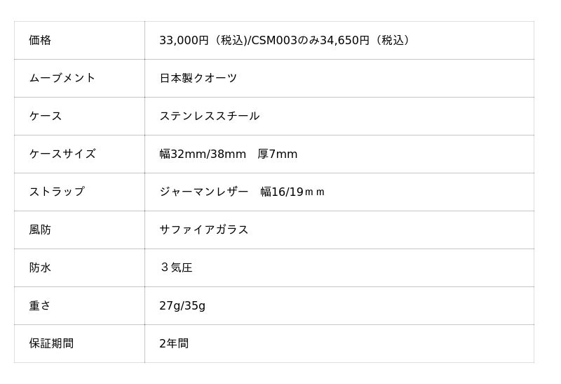 左から CSM001 / CSM002 / CSM003 / CSM004