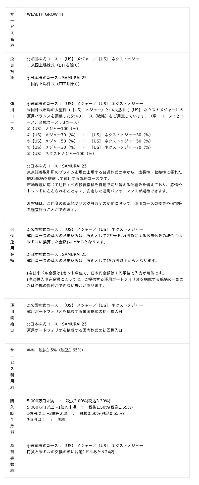 投資一任契約(「WEALTH GROWTH」)に係るリスクについて(「WEALTH GROWTH」を「本サービス」といいます。)