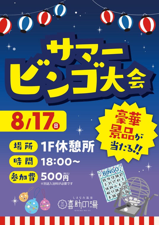 また、どなたでもご参加いただける「サマービンゴ大会」も実施。豪華景品が当たるチャンスをご用意しております。