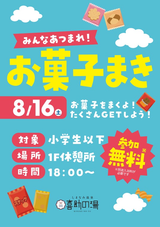 夏の特別企画として「お菓子まき」を開催いたします。