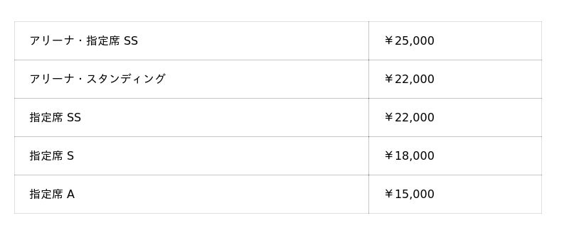 アリーナ・スタンディングSS、S、指定席 SS ▷▷▷ソールドアウト!