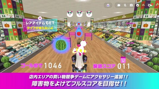 「イオン店内エリア」では、バーチャル食品売場内を特別なカートに乗って挑戦する「買い物競争ゲーム」も再登場。
