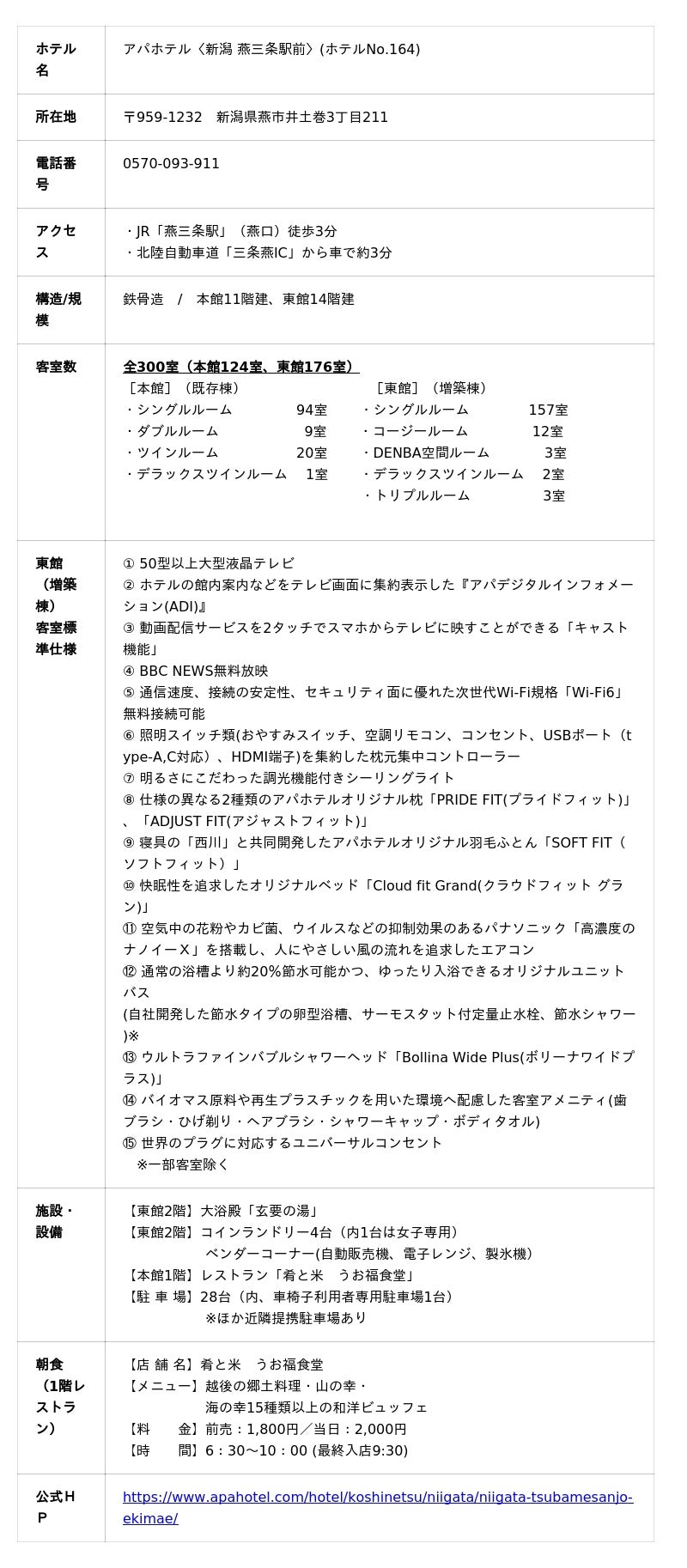 アパホテル〈新潟 燕三条駅前〉公式HP:https://www.apahotel.com/hotel/koshinetsu/niigata/niigata-tsubamesanjo-ekimae/
