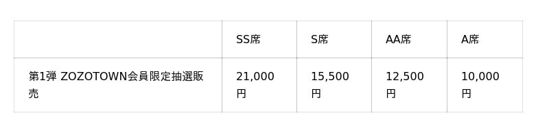 ※座席は全席指定です。チケット購入および抽選販売についての詳細はZOZOTOWN特設サイトをご確認ください。