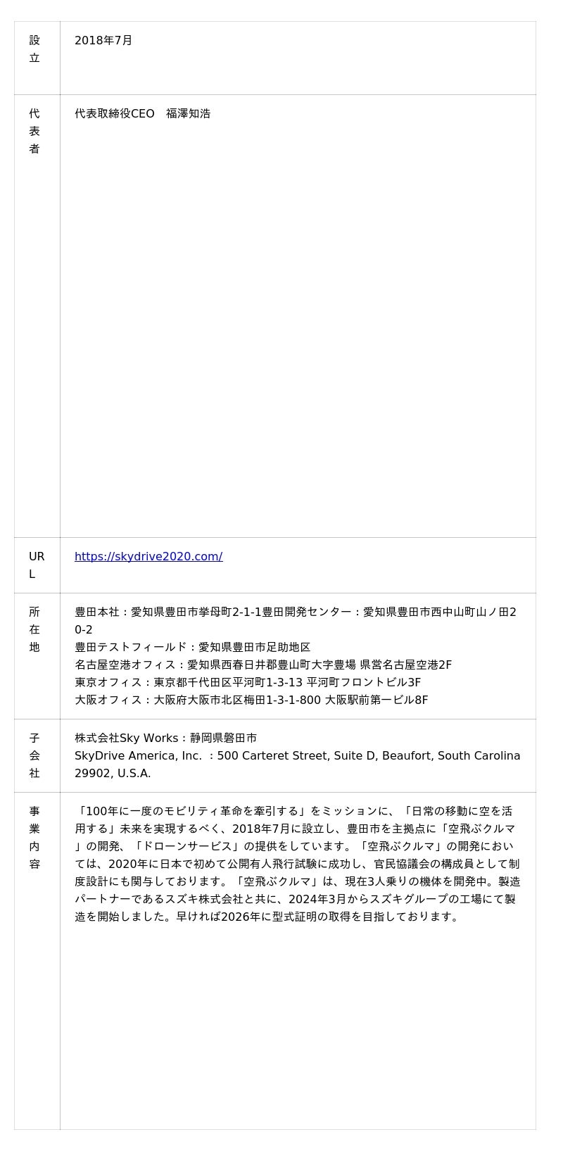 ≪株式会社SkyDrive 概要≫