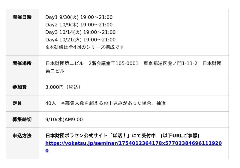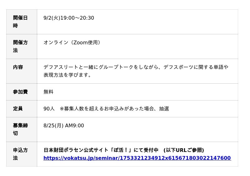 日本財団ボラセンでは、初心者から経験者まで、楽しみながら手話を学べる多彩なセミナーを開催しています。東京で開催されるデフリンピックまで残り約100日。手話を通じて、多様性を理解し、選手や観客を温かく迎えるための一歩を、ぜひ一緒に踏み出しましょう。