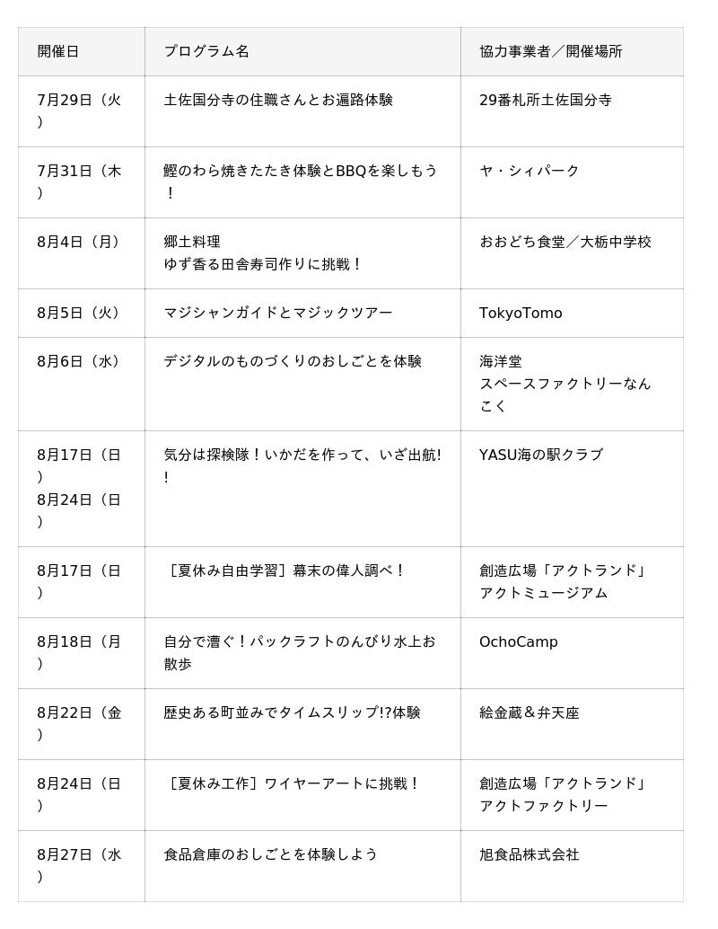 ものべがわエリアでの観光博覧会ものべすと実行委員会(事務局:一般社団法人 物部川DMO協議会)は、「ものべすと親子体験博2025」を2025年7月29日(火)より開催しております。