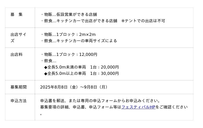 また、イベントを盛り上げるガレージセールの出店者も、物販部門と飲食部門の2部門で同時に募集します。
