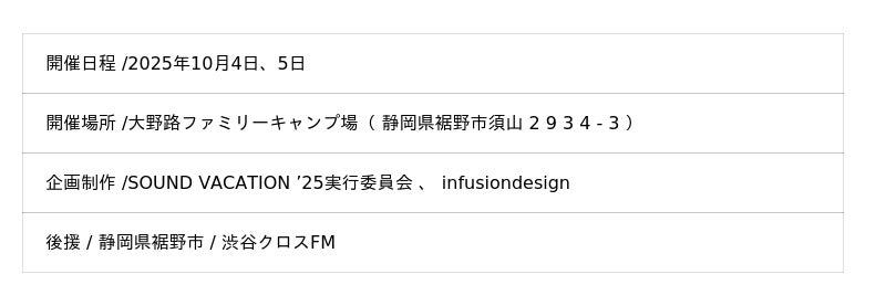 お問い合わせ:SOUND VACATION ’25 実行委員会、infusiondesign