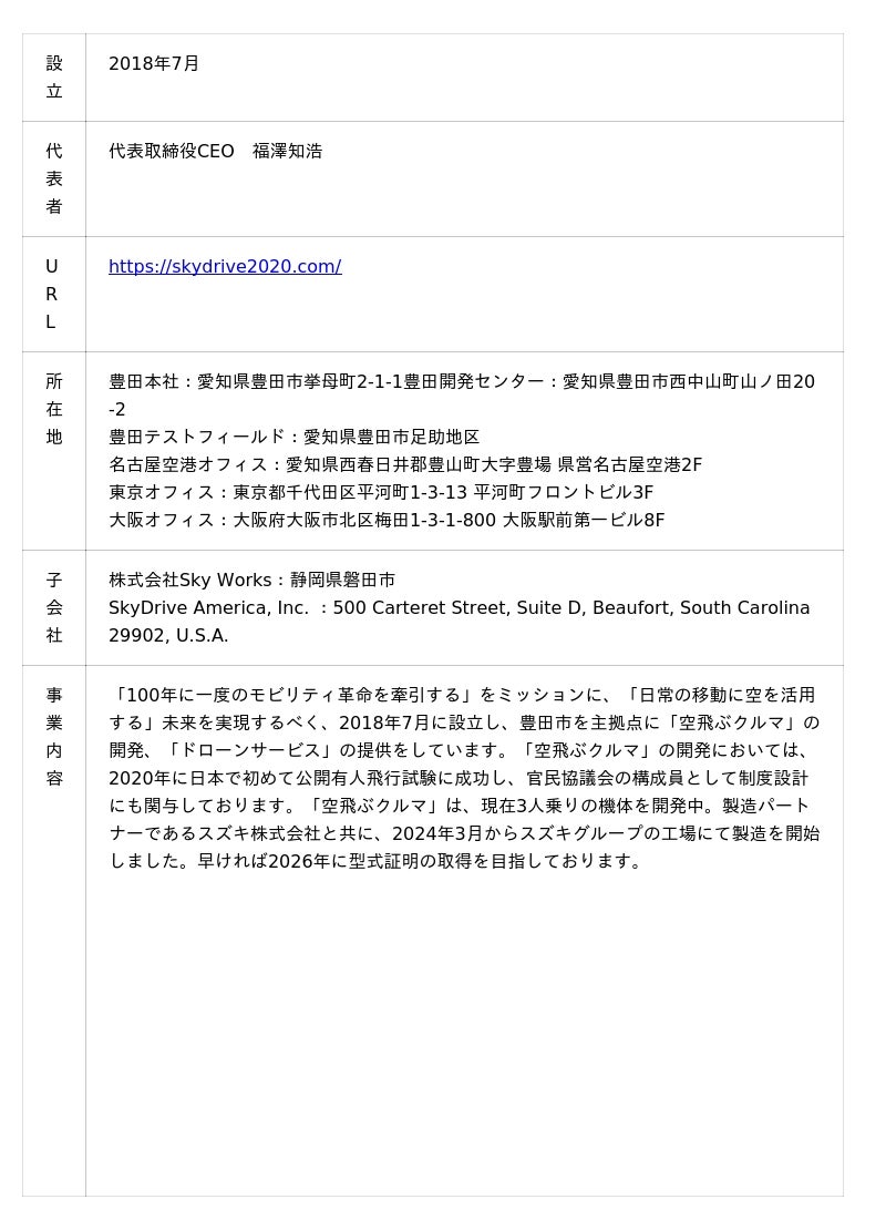 ≪株式会社SkyDrive 概要≫