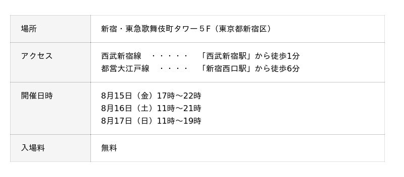 【入場無料】8月15日(金)~17日(日)の3日間限定で開催。