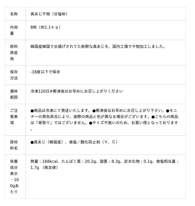 ○真あじ干物(甘塩味)