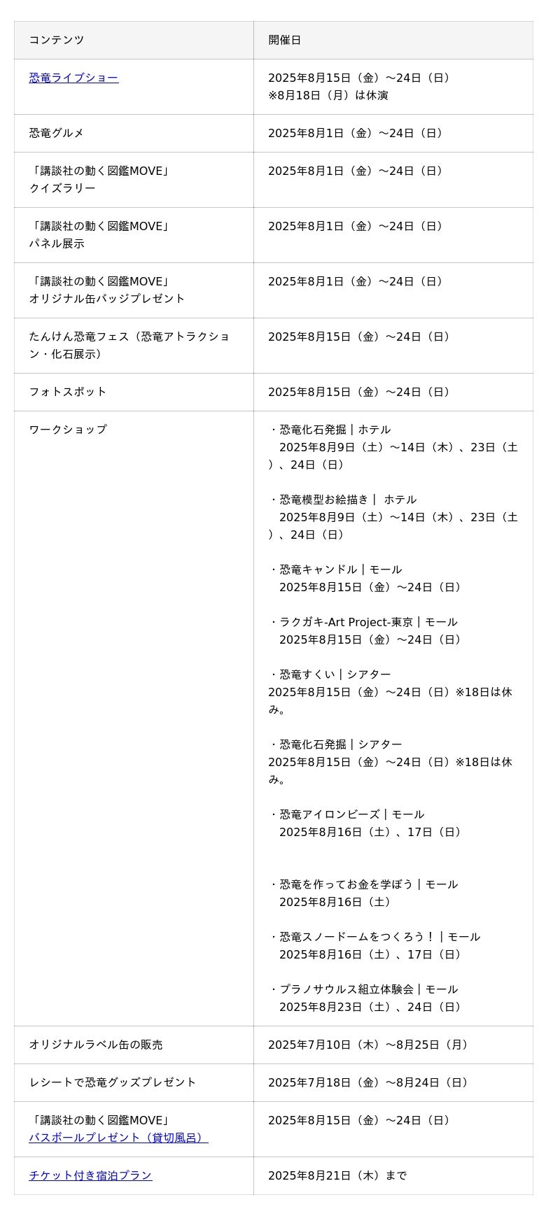 恐竜ライブショーはもちろんのこと、街区全体の多彩な恐竜関連企画で、ご家族やお友達と一緒に充実した夏休みのひとときをお過ごしいただけます。