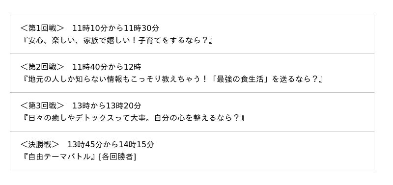イ 「超ちょうどイイ地元自慢決定戦」 11時10分から14時30分まで