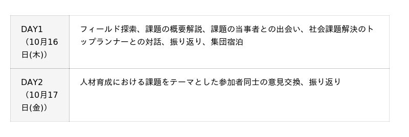 舞台となる新潟県越後妻有エリアは、限界集落が多数点在する課題先進地域であると同時に、世界中から50万人超が訪れる国際アートフェスティバル「大地の芸術祭」の開催地でもあります。当イベントでは同芸術祭の企画・運営実務責任者である原 蜜氏をゲストにお呼びし、企業人が社外に「越境」することで得られる学びや気づきを実際にご体感いただけます。