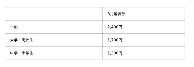 *障がい者手帳のご提示で、ご本人様とお付き添いの方1名様は半額となります。当日窓口にてご購入ください。(8月鑑賞券:一般1,200円、大学・高校生850円、中学・小学生650円)