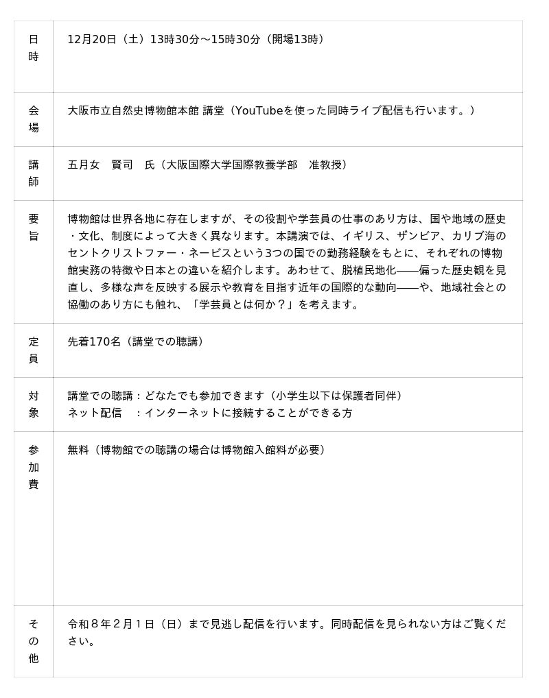 ■特別展講演会国内外の博物館で最先端の活動している研究者をお招きして、博物館活動を多面的に見る講演会を開催します。
