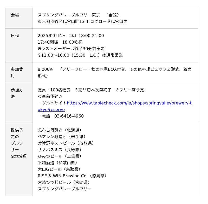 ● SVB東京 限定:「恵みJAPAN クラフトビール×秋のうまいもん in SVB東京」 概要