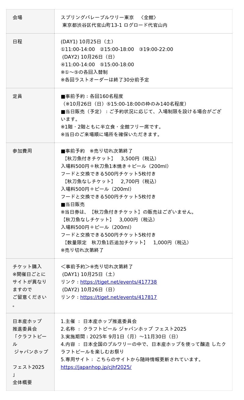 ● SVB東京 限定:「クラフトビール ジャパンホップ フェスト 2025 feat. 秋刀魚 in SVB東京」